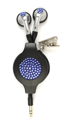 Retractable, decorative earphones to accessorize your music habit, whether it be with an iPod, portable CD player or your personal computer chicBuds are detailed with genuine Swarovski Crystals transforming, what was once simply functional, into ear candie. chicBuds Feature:-Genuine Swarovski Crystals-Retractable Connectors-Belt Clip included-Comes in an elegant pouchOFFICIAL SWAROVSKI Crystal Blue on Black chicBuds Earbuds Earphones Specifications